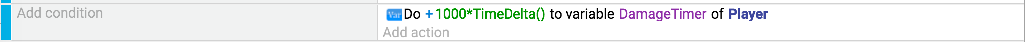 This example will increase the variable "DamageTimer" at a speed of 1000 units per seconds, which makes the "timer" run in milliseconds.