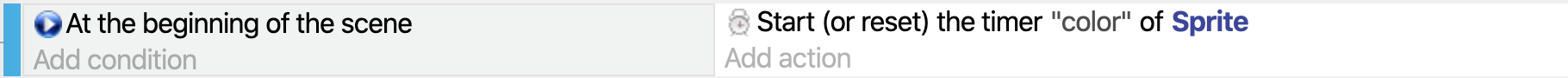 This action will create a timer called "color" on each instance of the Sprite object, and start these timers.