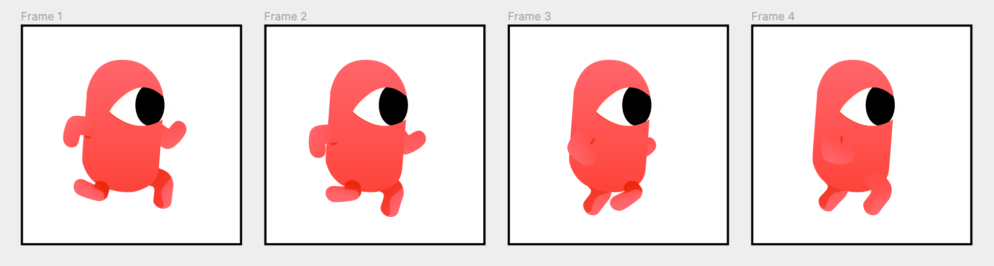 For a character called "Red Hero," with 4 frames of a Running animation: