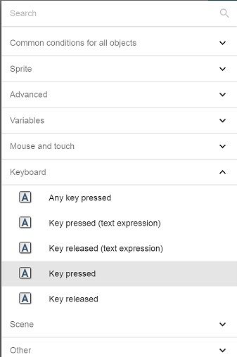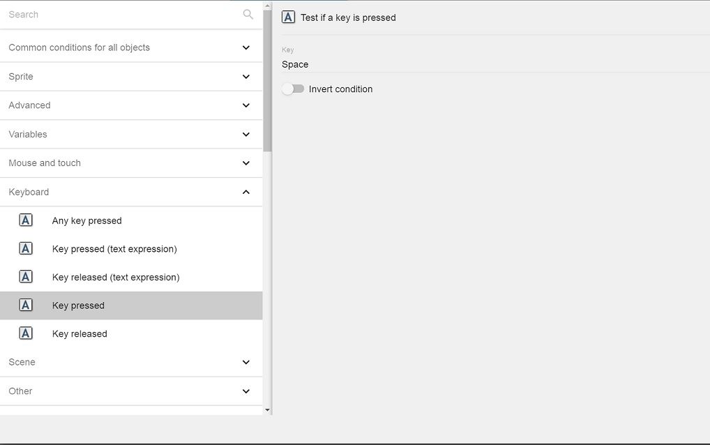 In the Key field, type Left and click OK. This condition is true if the player presses the left arrow on the keyboard.