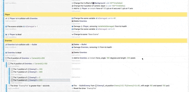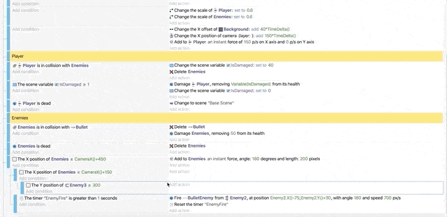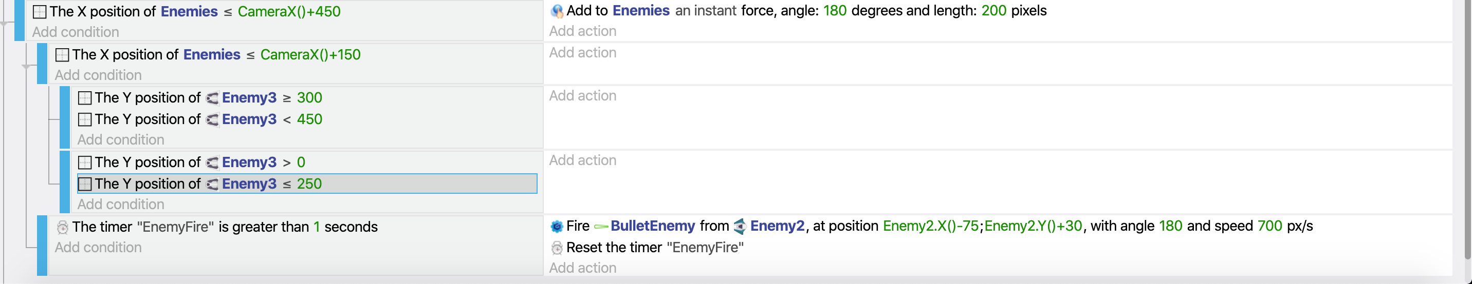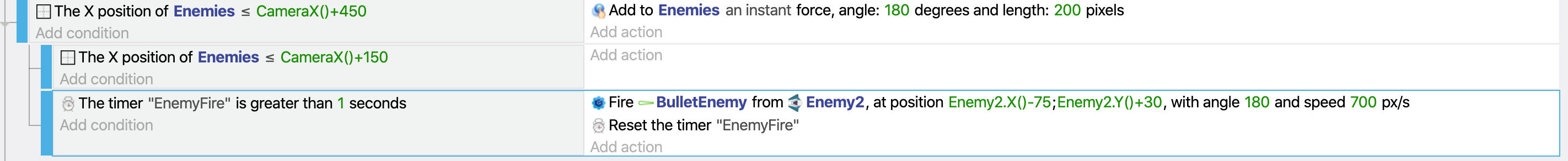Now, we are ready to prepare our conditions and actions. Open the Events page and copy-paste the condition in which we determine the enemies' position. Then, drag and drop to the under of the original condition to make a condition in a sub-event.