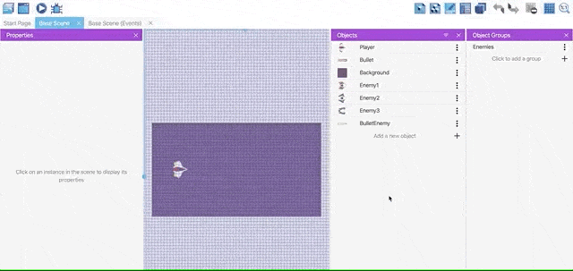 We will use object groups to control multiple meteor objects at once, especially in the events. Create a new object group called "Meteors" and add the meteor objects.