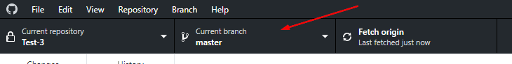 - Within GitHub Desktop, click the Current branch drop down.